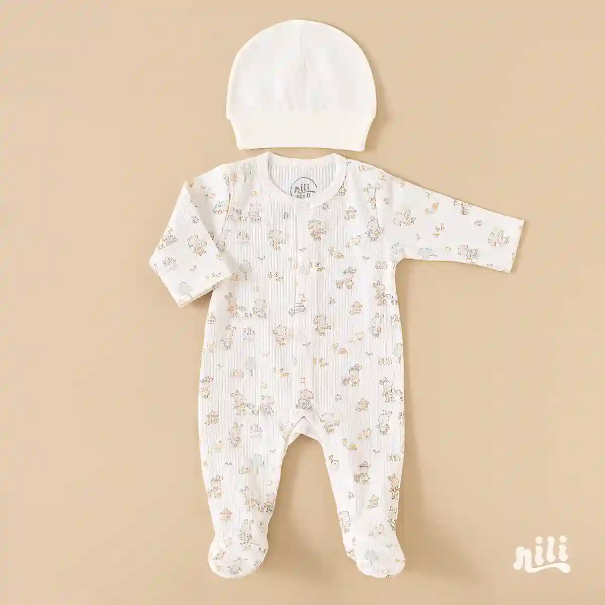 زیردکمه آستین کوتاه، زیردکمه رکابی، سرهمی جورابدار، مانتو، شلوار، پیشبند، کلاه گرد، یک جفت جوراب، یک جفت دستکش، آروغ گیر، دورپیچ نخی کلاه دار